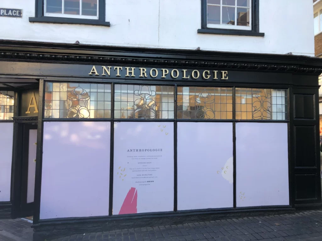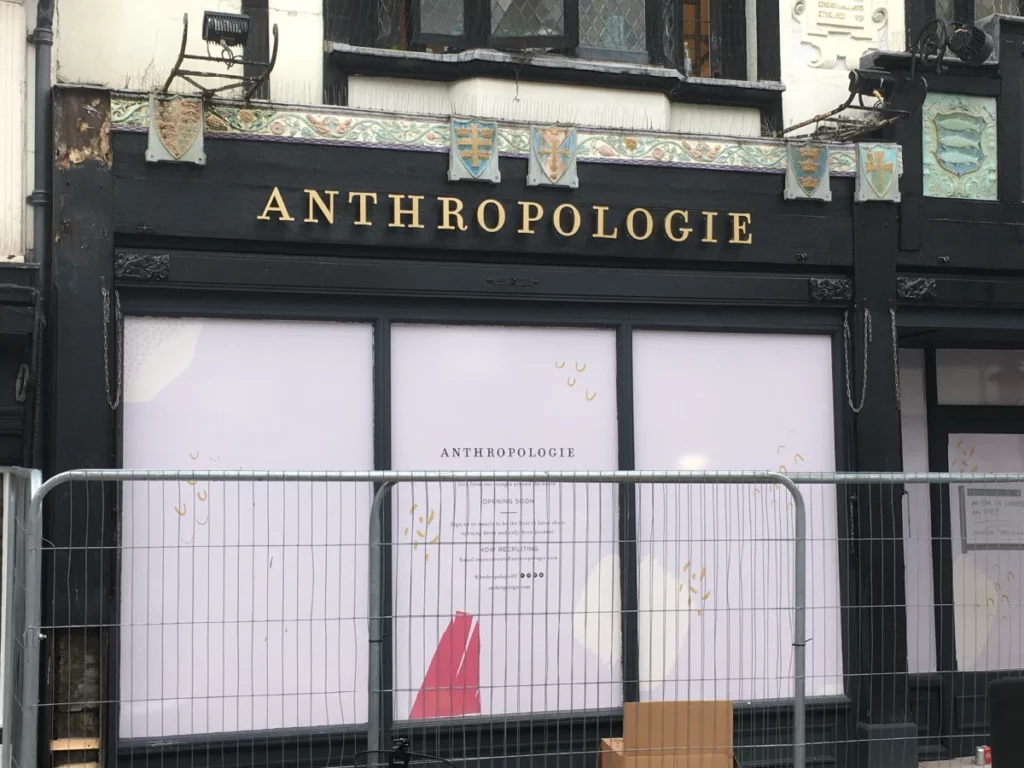 Working closely with a shop fitting company, we produced and installed built-up, gold painted logo, fascia, and projecting signs. We also provided internal painted acrylic wayfinding signs at multiple sites in the UK. This was achieved on time, and to budget.