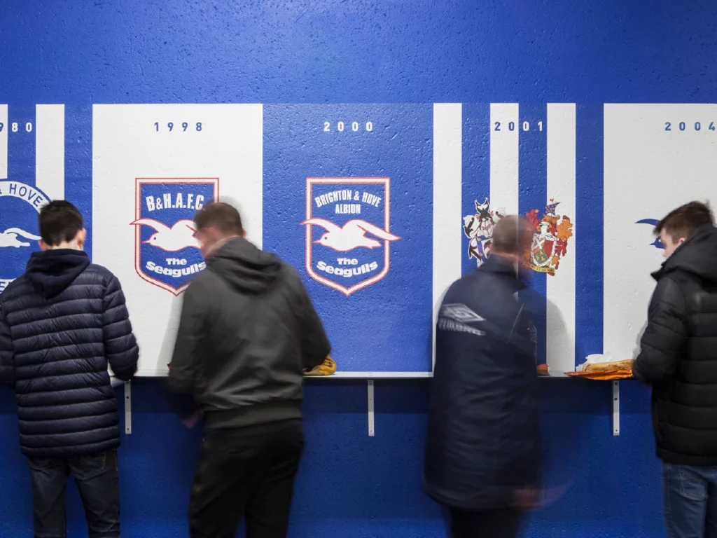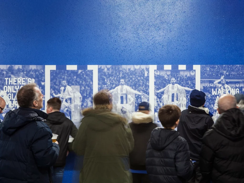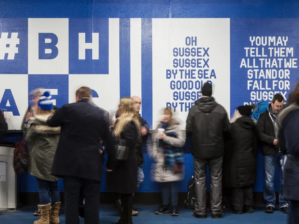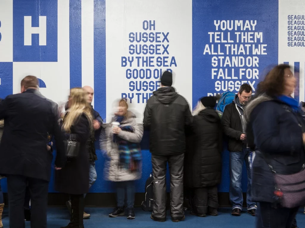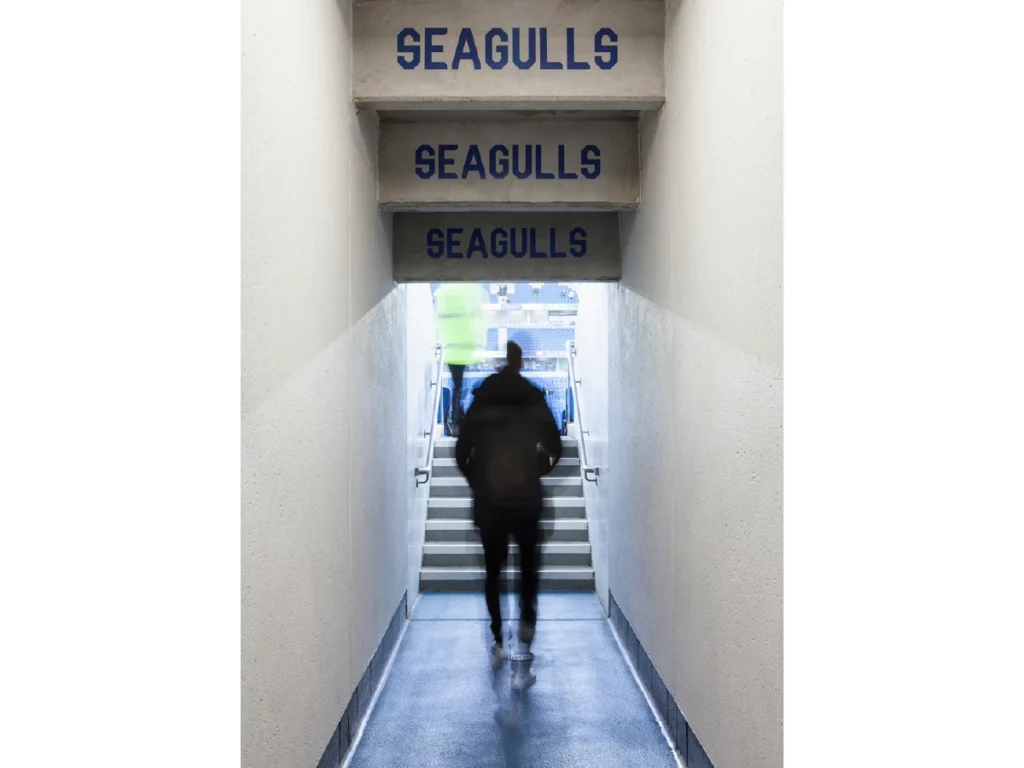 Transform the interior of the Falmer stadium’s Lower East and Upper West stand concourses. All elements needed to incorporate the club’s new visual identity, while celebrating the heritage of the Seagulls, to create an impactful and emotionally rousing experience for fans and visitors.