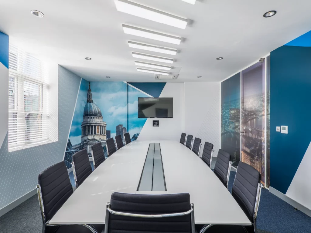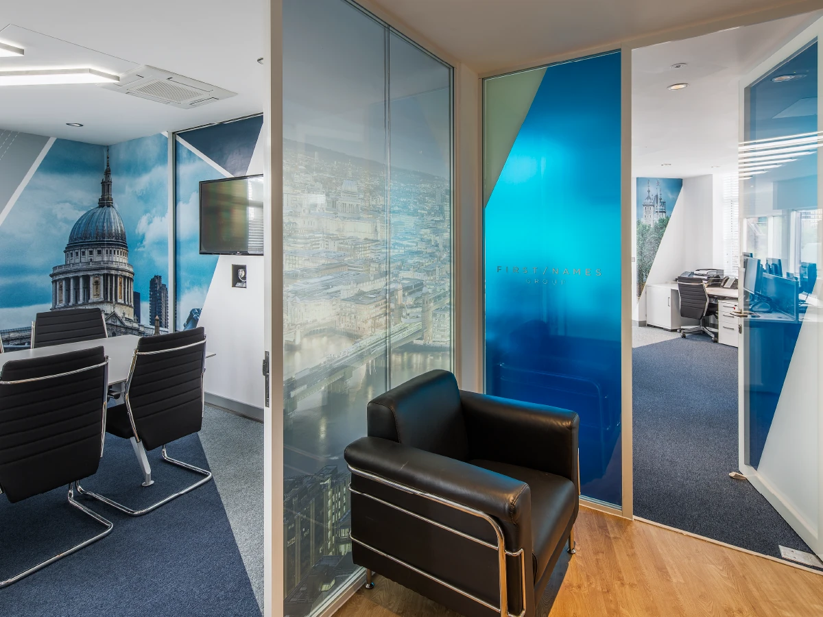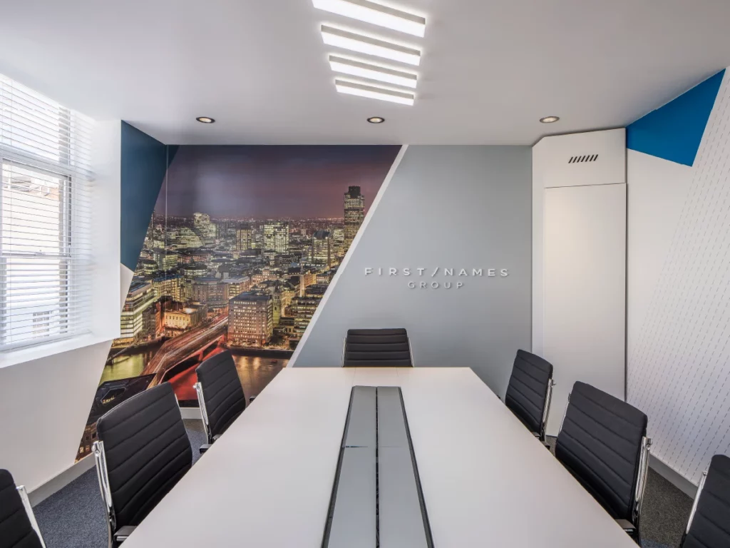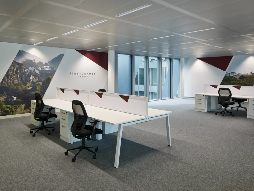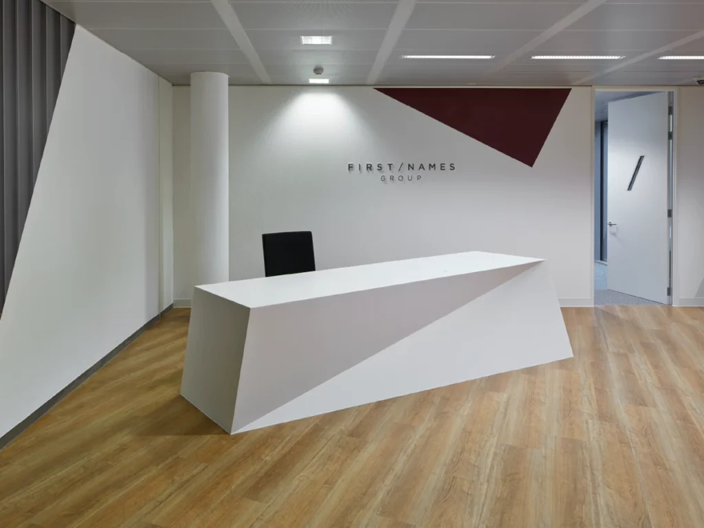 Design and fit out multiple international offices in London, Jersey, Amsterdam, Luxembourg, and New York. All elements must implement the company’s brand ID throughout, including in the office layout, bespoke furniture, lighting design, signs, and graphics.