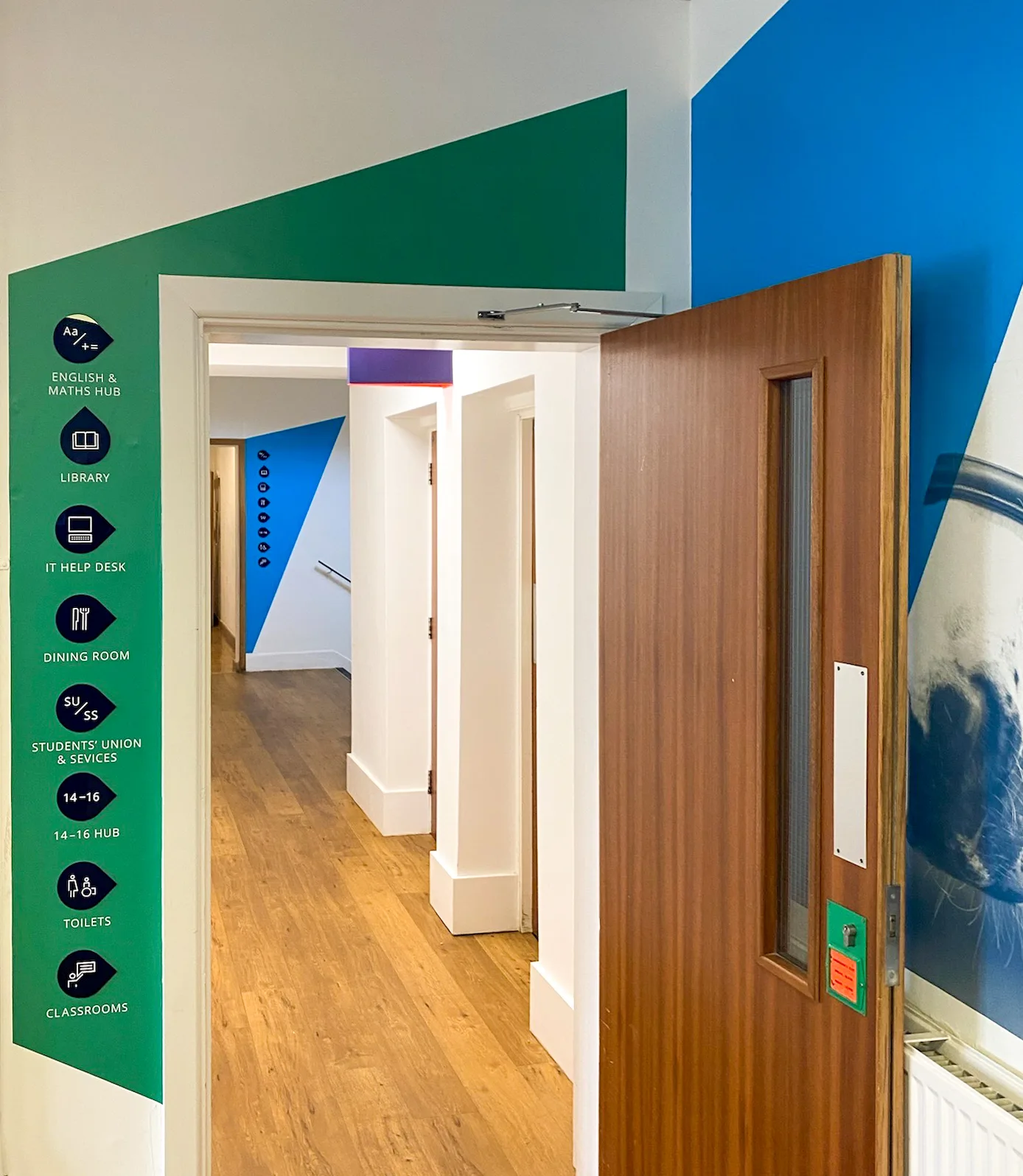 Our experience means we have a vast knowledge of educational signage requirements. From wayfinding signage to wall graphics and vinyl, notice boards and banners, to classroom door signs, and safeguarding information points, we have a multitude of practical solutions for your signage needs.
