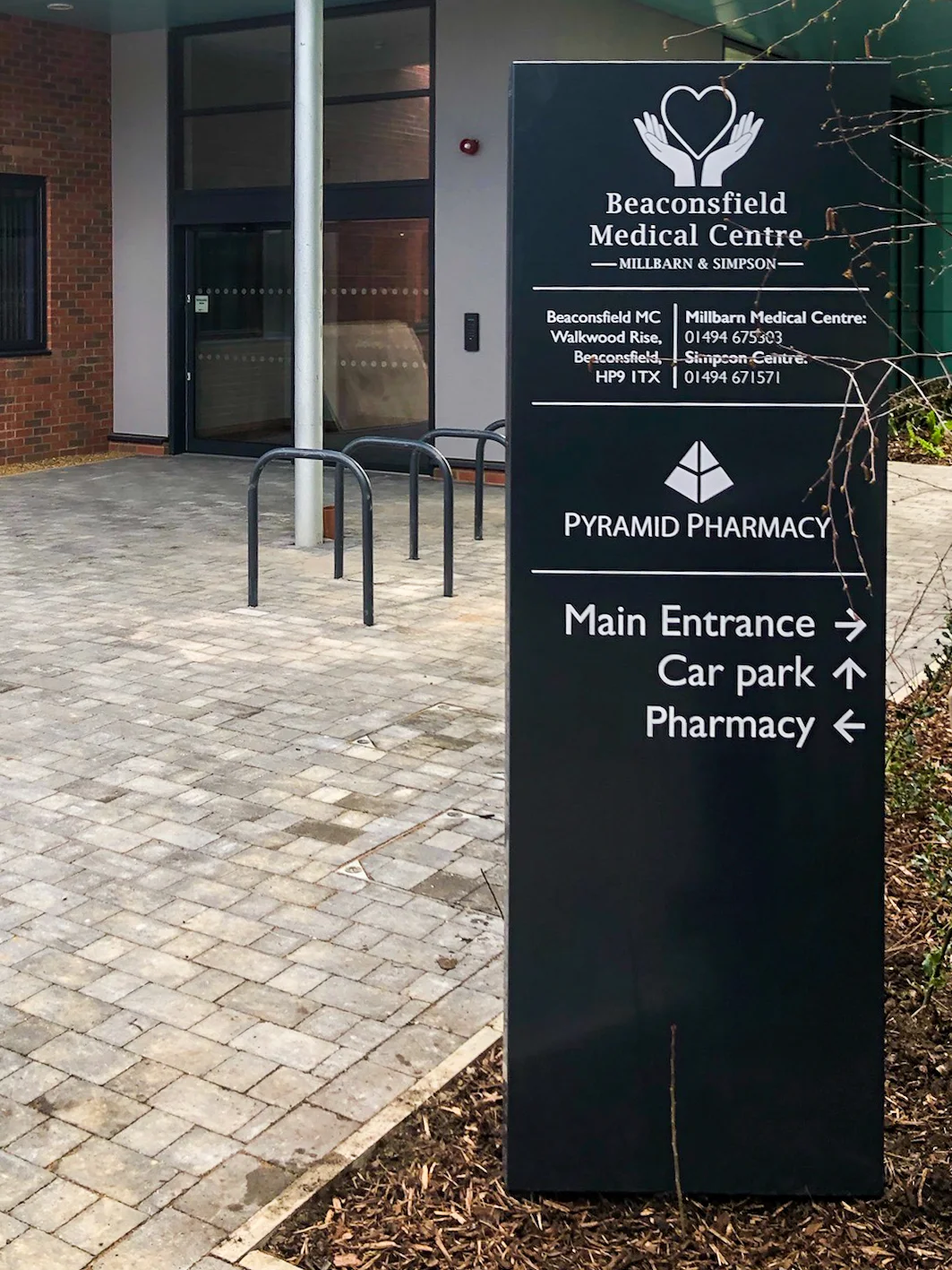 Exterior hospital signage often requires a healthy mix of totems for car parks, fascia signs for entrances and wayfinding signage. These signs should be manufactured from the most suitable materials for longevity against the elements. Also, the information these signs carry should be in solid colours that don’t conflict with each other, and in a suitably sized typeface that are visible from a reasonable distance.